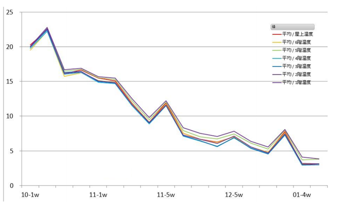 NEXT21の屋上に設置された太陽光発電パネルについて、建設時と現在の発電量を比較しました。 建設時から25年で、約18%の発電量低下がみられました。 また、この間にパネル製造技術が進み、同じ面積でも定格発電量は、1.8倍になっています。 2018年秋にリプレイスを実施し、今後は同じ面積でも2倍を超える発電量が見込まれています。