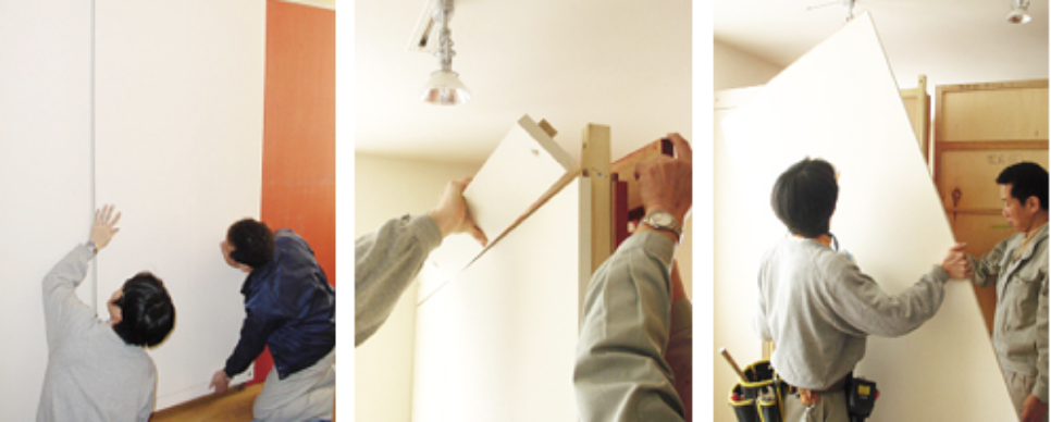 間取り変更が省資源・短期間で簡易に行える設えを利用し、キッチン・リビング・北側個室、南側寝室の間取り変更を行いました。