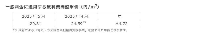大阪ガス株式会社(社長:藤原 正隆)は、2024年12月~2025年2月の平均原料価格に基づき、2025年5月検針分の一般料金に適用する単位料金を以下の通り調整いたします。この調整により今月の標準家庭におけるガス料金は6,579円(税込)になります。
