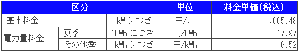 1需要場所において動力契約とあわせて契約する場合は、契約容量と動力契約の契約上使用できる最大電力との合計(この場合、1 kVAを1kWとみなします。)が50kW未満であること |