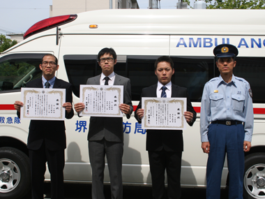 このときの迅速かつ適切な対応がお客さまの救命に貢献したとして、5月8日(木)、堺市消防局北消防署から表彰されました!