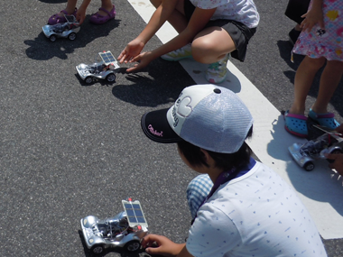完成したら、また全員で外へ☆できあがったソーラーカーを走らせて、子どもたちは、みんな楽しそうに遊んでいましたよ!