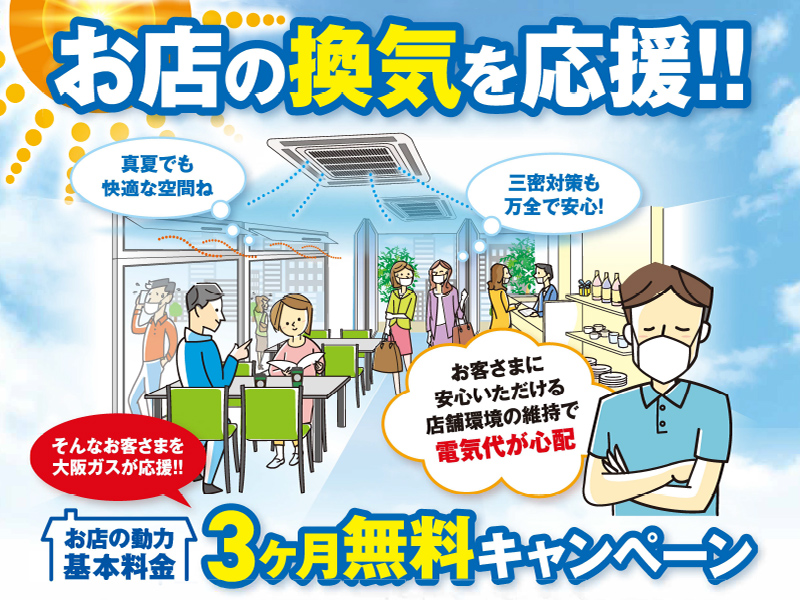 「お店の換気を応援!!お店の動力基本料金3ヶ月無料キャンペーン」