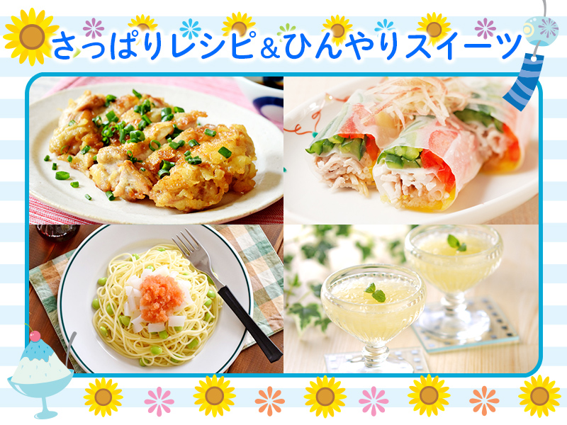 明日から9月ですが、まだまだ厳しい暑さが続いていますね。この時期になると夏の疲れが出る方も多いのでは?そこで今回は、残暑におすすめの旬な食材を使ったさっぱりレシピと、冷たくて美味しいひんやりスイーツをご紹介します。ぜひ作ってみてくださいね☆