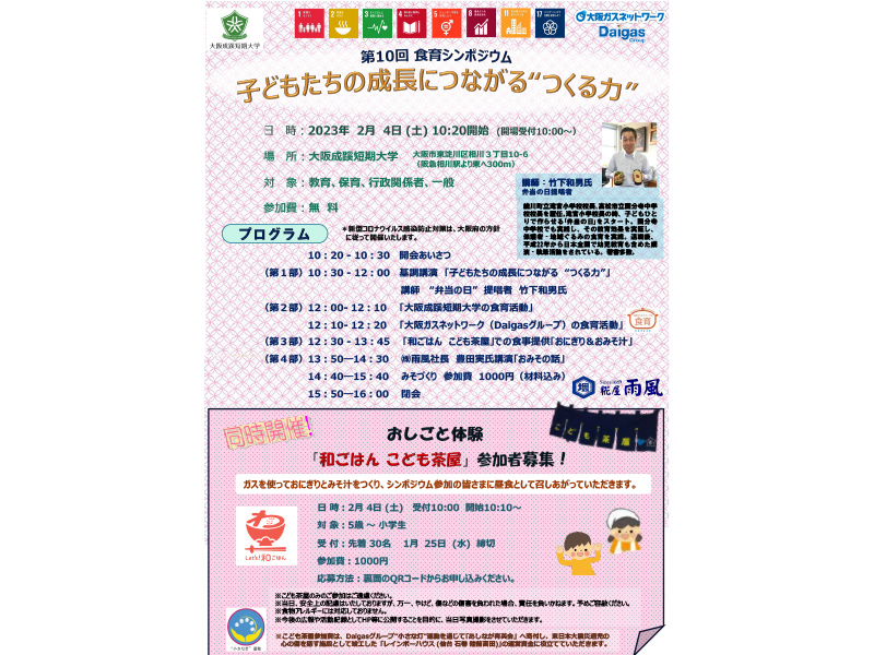 おしごと体験の参加者も募集中♪ 第10回「食育シンポジウム」開催