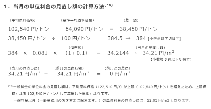 大阪ガス株式会社(社長:藤原 正隆)は、2022年11月検針分の一般料金に適用する単位料金を2022年10月検針分に比べて1m3につき0円(税込)調整させていただきます。これは、2022年6月~2022年8月の平均原料価格(102,540円/トン)による原料費調整を行うものです。この調整により標準家庭で2022年10月検針分とガス料金は同額となります。