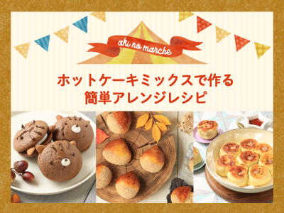 簡単に多彩なアレンジができるホットケーキミックス。今回は、かわいいリスにデコレーションした「ウーピーパイ」、栗をまるごと1個入れた「栗まんじゅう」、フライパンで簡単に作れる惣菜系「ちぎりパン」の3品をご紹介します。おやつや軽食に、ぜひ作ってみてください♪