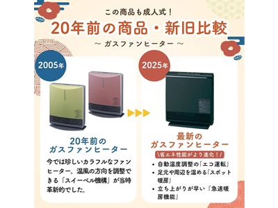 2005年の9月、ガスファンヒーター「RANK+(ランクプラス)」の初期型が発売されました。カラフルな色展開と、当時の売りポイントである、温風の方向を調整できる「スイーベル機構」は斬新な機能の1つでした。